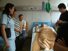 2007年5月18日上午10:00時許,市急救中心骨科42號病床前比往日增添了幾分溫情和關愛,“還是組織好,讓我今生難忘…”。 躺在病床上的退休黨員肖方領老師(D-9-5業主)熱淚盈眶地對前往看望他的支委成員們說。