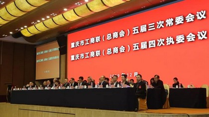 重慶市工商聯(總商會)五屆三次常委會議、五屆四次執委會議于2019年12月26日下午在金源酒店隆重召開。市委統戰部領導、駐市委統戰部紀檢監察組負責人和市委統戰部經濟處負責人;市工商聯(總商會)全體會領導、常委、執委;市總商會名譽會長、顧問等共計300余人參加,集團公司董事長楊勇參加了會議,本次會議由市委統戰部副部長、市工商聯黨組書記向遠春主持召開。