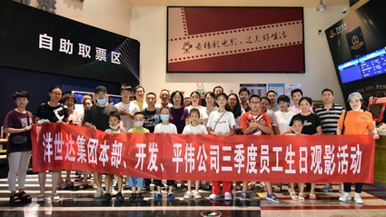 2022年8月18日下午,集團本部、房產公司、平偉公司的三季度壽星們與公司全體同仁一起在南坪萬達影院參加“獨行月球,夏日觀影”活動,共同慶祝生日。