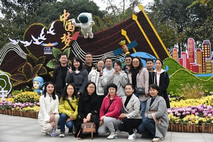 “采菊東籬下,悠然見南山”。初冬微寒時節(jié),重慶南山植物園中的菊花正值盛放之中。11月24日下午,集團本部、房產(chǎn)公司、平偉公司的四季度壽星與公司同事們一起到南山植物園參觀“重慶市第二十五屆菊花藝術展”。