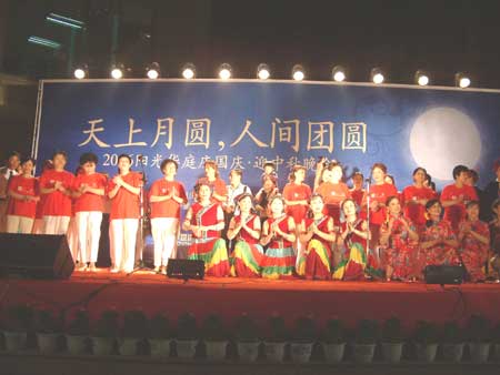 國慶中秋兩節遇,合家團圓精神俱。2006年9月28日晚19:30,“陽光華庭”一期大門口熱鬧非凡,華燈璀璨。“天上月圓、人間團圓--陽光華庭2006慶國慶迎中秋文藝晚會”在這里隆重舉行,來自小區的上千名業主觀看了此次晚會。