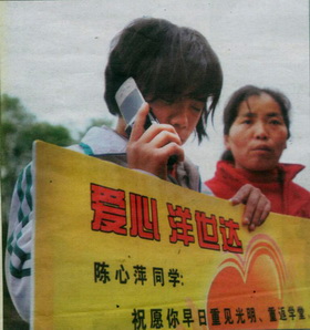 病魔無情,人間有愛。4月8日上午,洋世達集團公司總裁、凱誼公司總經理楊勝,在看到《長壽文化》報道云集鎮飛龍學校16歲女孩陳心萍因學習用功過度導致失明而不能繼續上學的新聞后,引起強烈震撼?!斑@個娃兒太可憐了,我們不能袖手旁觀,一定要為孩子做點什么!”百忙之中的楊總立即決定,委托凱誼公司袁鴻賓副總經理代表本人及公司,將10萬元愛心款和祝福專程送到小心萍手上。
