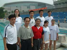 集團公司領導與游泳隊員合影